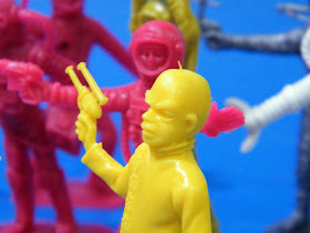 Cada color es un grupo, en total 20 figuras, alienígenas, astronautas, robots y los protagonistas de la serie, Lady penelope Creighton-ward y The Hood,  ademas la caja se completa con dos modelos de naves espaciales, fabricadas en plástico duro.
